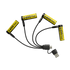 Chaque pile AA NH2400 intègre un port USB-C permettant une recharge directe. Le câble à 4 branches USB-C inclus permet de recharger les 4 piles simultanément en 3 heures (5V-0,5A). L'embout double ports (USB-A et USB-C) garantit compatibilité maximale avec toutes sources d'alimentation. L'indicateur lumineux sur chaque pile affiche l'état : rouge (en charge) / vert (chargée).